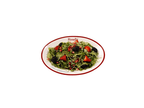 Small arugula pieces mixed with pomegranate, strawberries, and berries, blended with balsamic and olive oil.